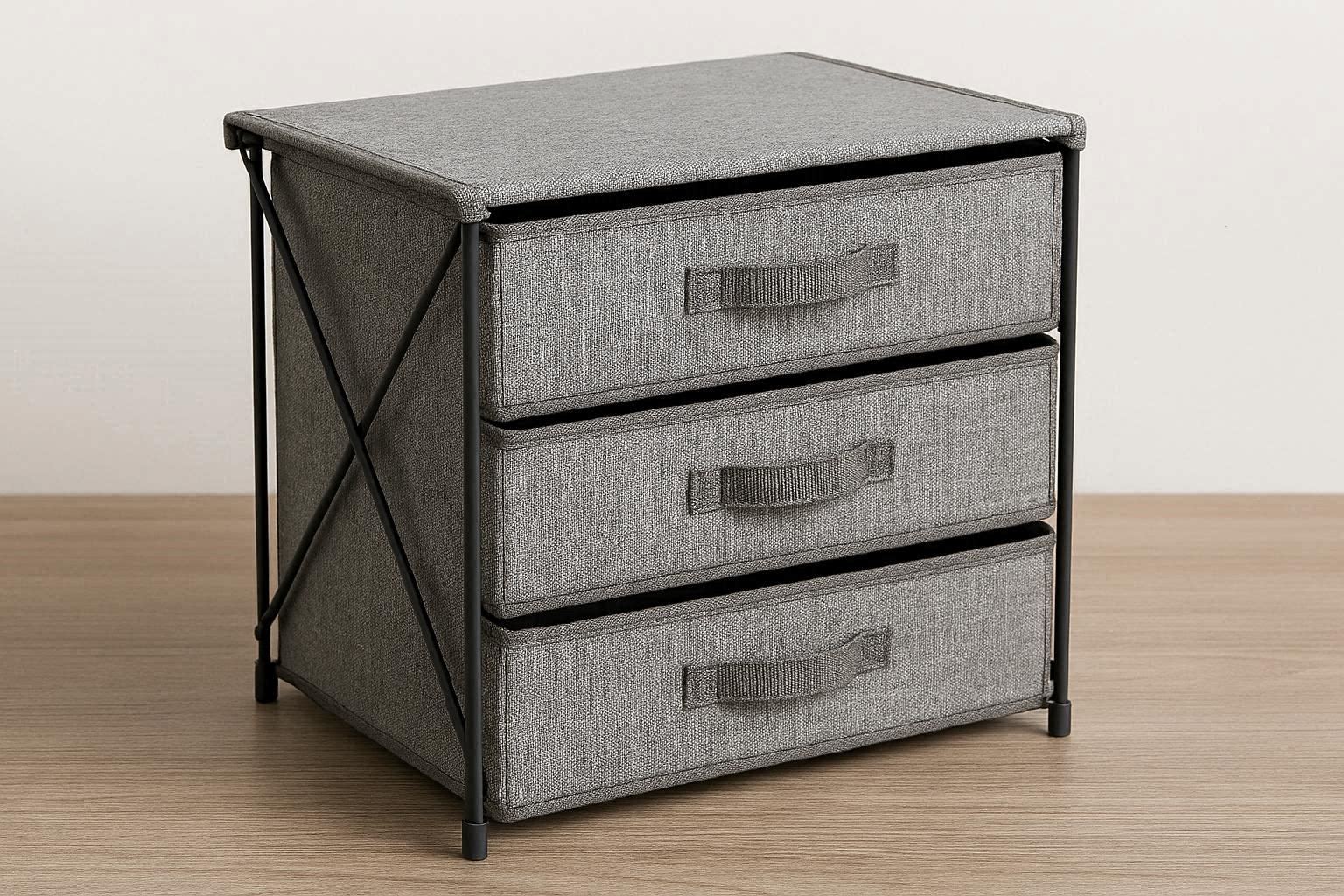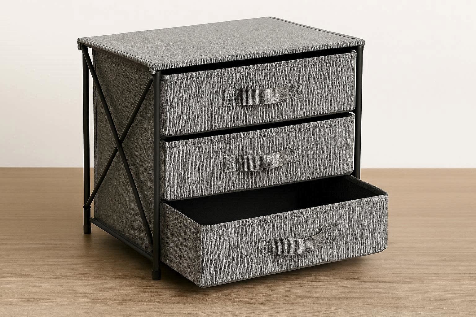 The drawers are perfect for storing small items like keys, coins, and paper clips, while the top surface can be used to display plants or small decor pieces. The cabinet fits perfectly on small desks or side tables, making it ideal for studio apartments or dorm rooms. The wooden frame ensures stability, and the fabric is easy to clean with a damp cloth.