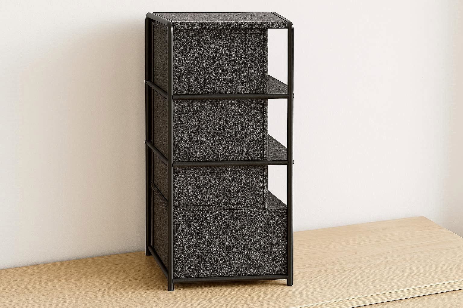 Crafted from breathable non woven fabric with a sturdy cardboard frame, this fabric desktop cabinet measures 11 x 7 x 12 inches, offering three open shelves for display and storage. The soft fabric is gentle on delicate items, while the reinforced frame ensures stability and durability. The foldable design allows you to collapse it flat when not in use, saving valuable space in small dorm rooms or bedrooms.