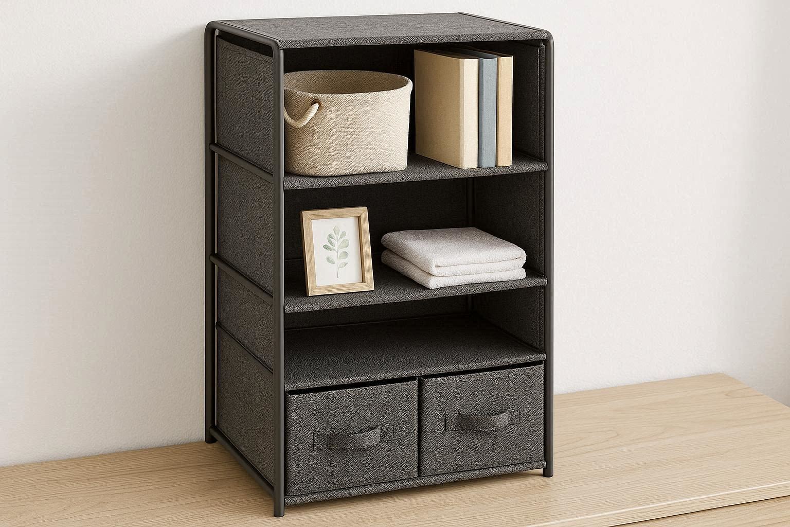 Fabric Desktop Storage Cabinet with Shelves for Bedroom and Dorm Use