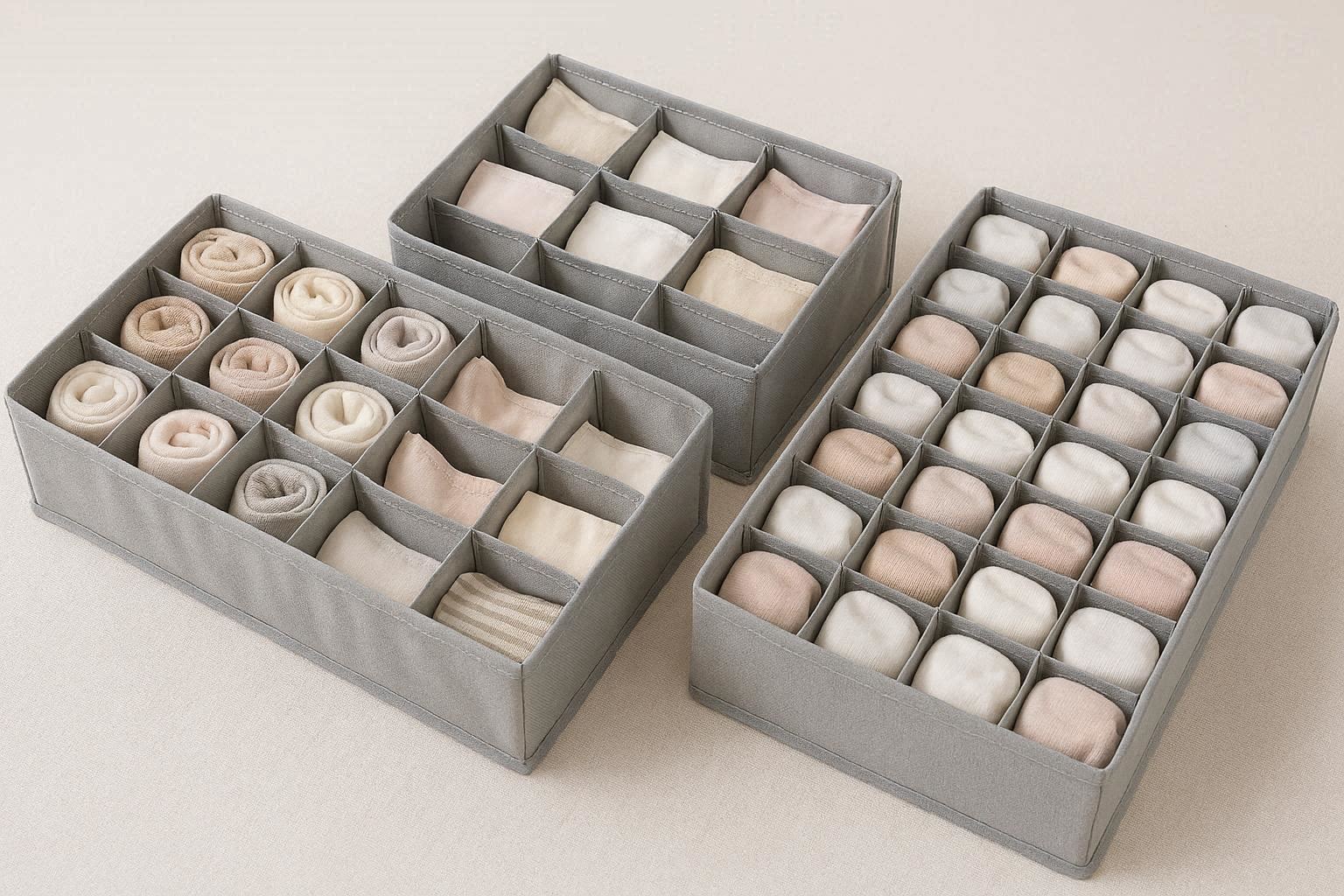Multi Compartment Closet Organizer Bags Pack of 3 for Socks Underwear