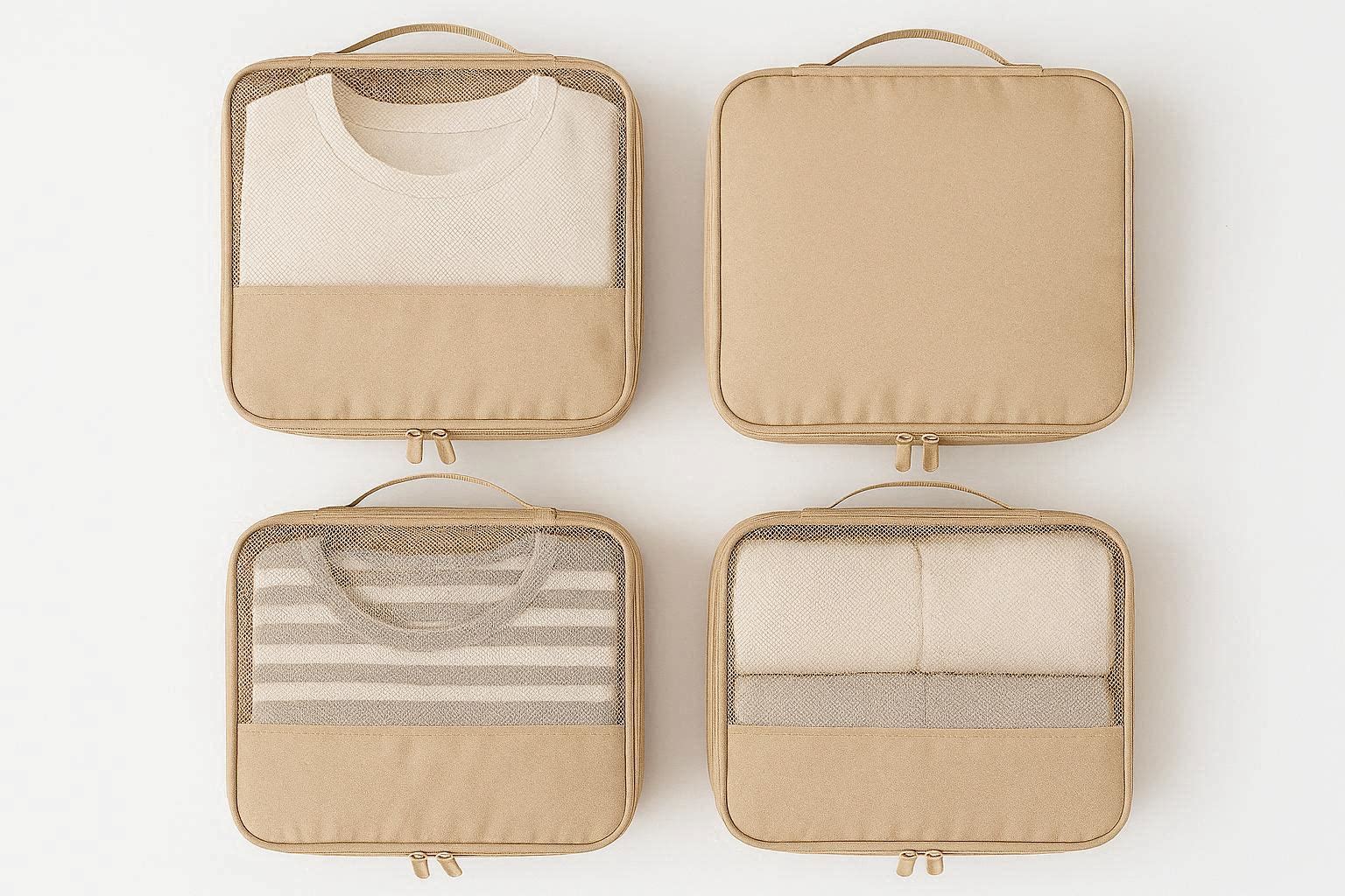 Each bag has a clear label pocket where you can write the contents, making it easy to find what you need quickly. The bags fit perfectly in most suitcases, backpacks, or duffel bags, helping you separate clean clothes from dirty ones or organize different types of clothing. The neutral white color is easy to clean, and the durable fabric ensures the bags can be used for multiple trips. It is a must have travel accessory for keeping your luggage tidy.