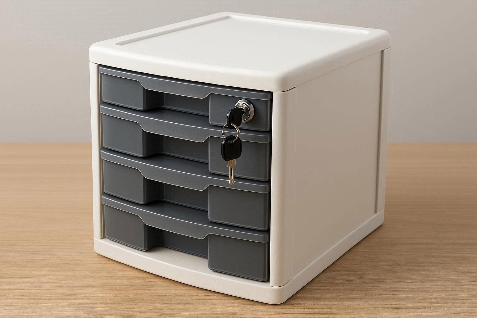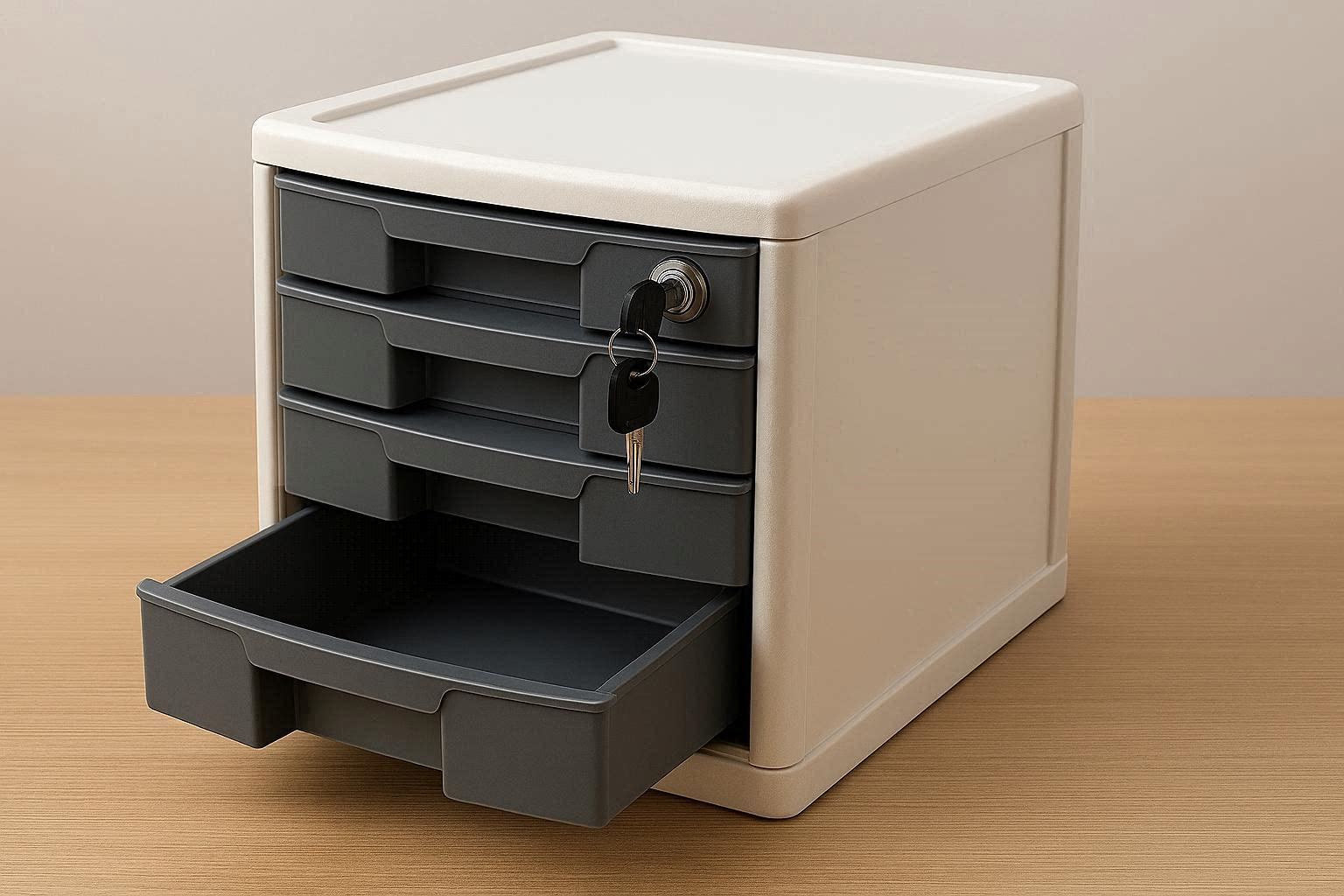 Stackable Plastic Desktop Cabinet with Lockable Drawers for Secure Storage